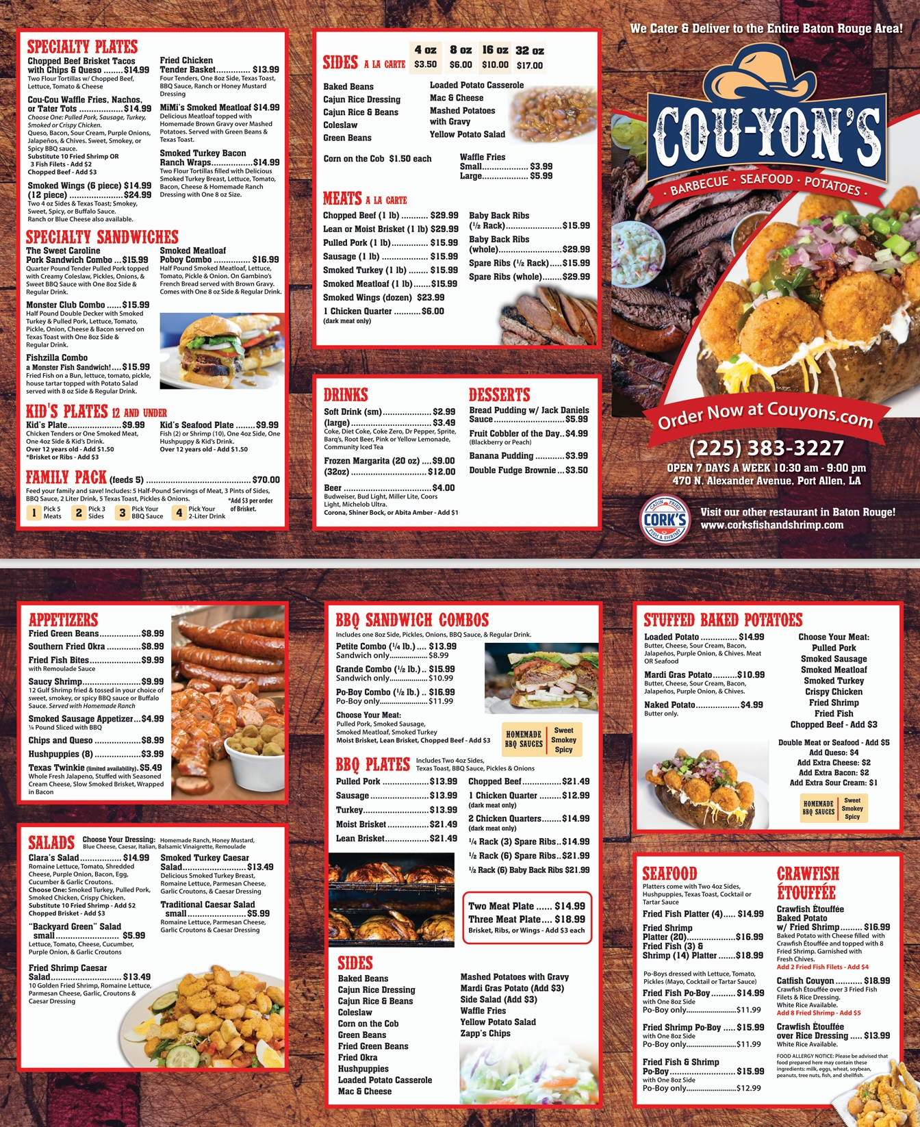 Email us at couyonscatering@gmail.com or call us at 225-383-3227 extension 2 with any questions.
